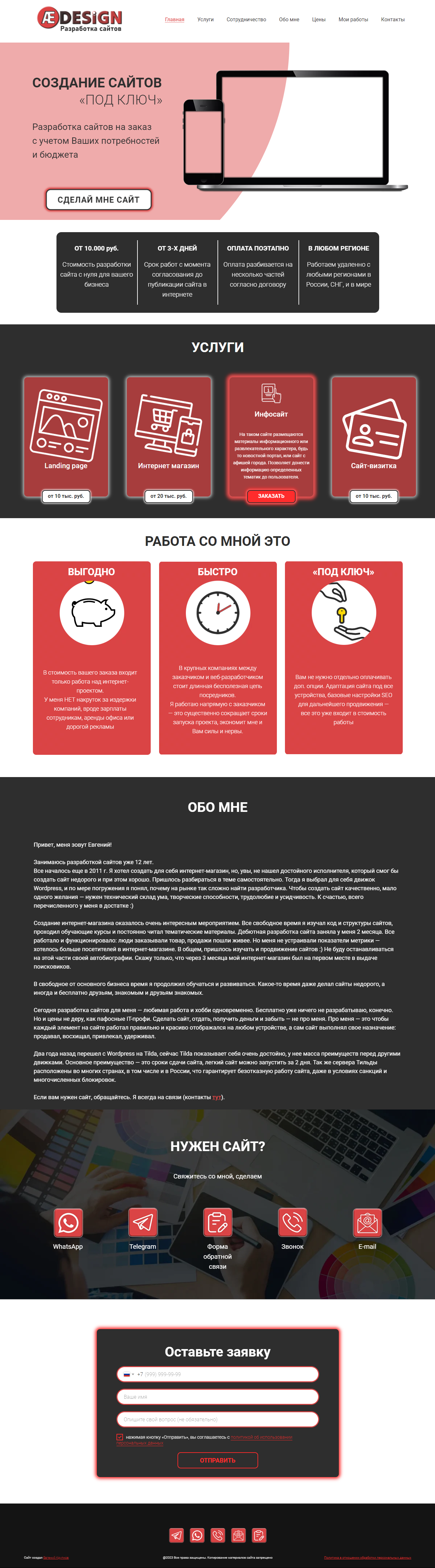Сегодня разработка сайтов для меня — любимая работа и хобби одновременно. Бесплатно уже ничего не разрабатываю, конечно. Но и цены не деру, как пафосные IT-профи. Сделать сайт, отдать, получить деньги и забыть — не про меня. Про меня — это чтобы каждый элемент на сайте работал правильно и красиво отображался на любом устройстве, а сам сайт выполнял свое назначение: продавал, восхищал, привлекал, удерживал.
